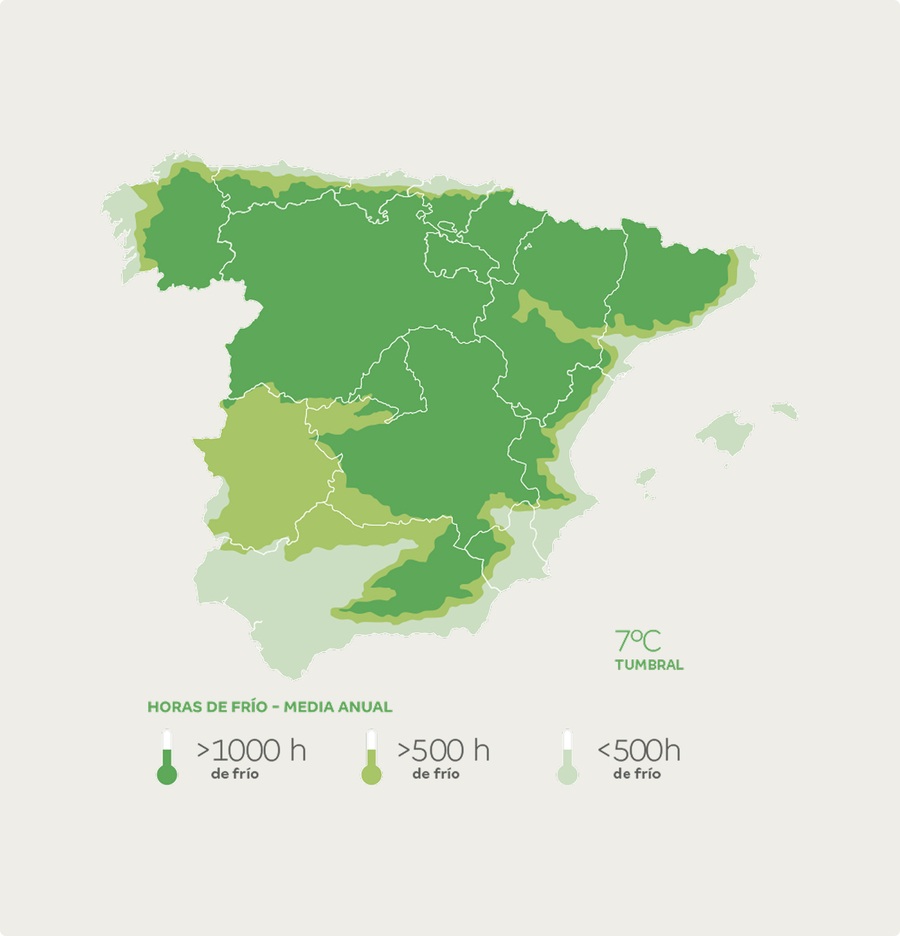 Due to its climatic conditions, the best areas in Spain to plant pistachios are: Castilla-La Mancha, Extremadura, Aragón, Castilla y León, Catalonia, and northern Andalusia.