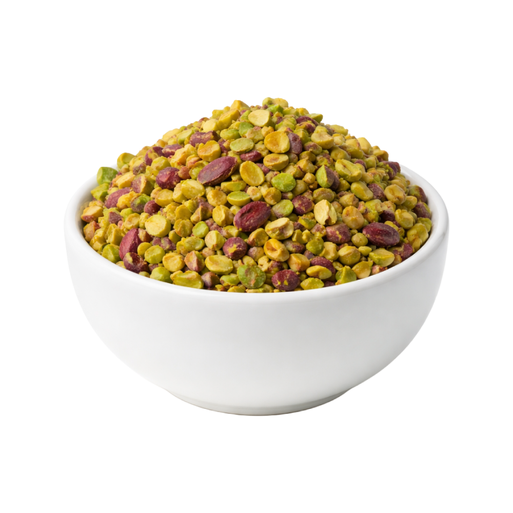 Fragmentos de pistacho de sabor intenso y textura crujiente, diseñados para aportar calidad a productos de la industria alimentaria.